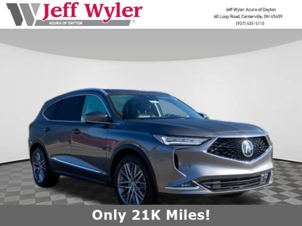 Jeff Wyler Acura of Dayton is delighted to offer this wonderful 2023 Acura MDX Advance in Liquid Carbon Metallic. Ebony Leather, 16 Speakers, 3rd row seats: split-bench, 4-Wheel Disc Brakes, 4.17 Axle Ratio, A/V remote: CabinControl, ABS brakes, Adaptive suspension, Air Conditioning, Alloy wheels, AM/FM radio: SiriusXM, Anti-whiplash front head restraints, Apple CarPlay/Android Auto, Audio memory, Auto High-beam Headlights, Auto tilt-away steering wheel, Auto-dimming Rear-View mirror, Automatic temperature control, Brake assist, Bumpers: body-color, Compass, Delay-off headlights, Driver door bin, Driver vanity mirror, Dual front impact airbags, Dual front side impact airbags, Electronic Stability Control, Emergency communication system: AcuraLink, Four wheel independent suspension, Front anti-roll bar, Front Bucket Seats, Front Center Armrest, Front dual zone A/C, Front fog lights, Front reading lights, Fully automatic headlights, Garage door transmitter: HomeLink, Heads-Up Display, Heated & Ventilated Front Sport Seats, Heated door mirrors, Heated front seats, Heated rear seats, Heated steering wheel, HVAC memory, Illuminated entry, Knee airbag, Lane departure: Lane Keeping Assist System (LKAS) active, Leather steering wheel, Low tire pressure warning, Memory seat, Navigation system: Acura Navigation System with 3D View, Occupant sensing airbag, Outside temperature display, Overhead airbag, Overhead console, Panic alarm, Passenger door bin, Passenger vanity mirror, Perforated Premium Milano Leather Trimmed Seats, Power door mirrors, Power driver seat, Power Liftgate, Power moonroof, Power passenger seat, Power steering, Power windows, Premium audio system: Acura/ELS Studio 3D, Radio data system, Radio: ELS Studio 3D Premium Audio System, Rain sensing wipers, Rear air conditioning, Rear anti-roll bar, Rear reading lights, Rear seat center armrest, Rear window defroster, Rear window wiper, Remote keyless entry, Security system, Speed control, Speed-sensing steering, Speed-Sensitive Wipers, Split folding rear seat, Spoiler, Steering wheel memory, Steering wheel mounted audio controls, Tachometer, Telescoping steering wheel, Tilt steering wheel, Traction control, Trip computer, Turn signal indicator mirrors, Variably intermittent wipers, Ventilated front seats, and Wheels: 20" x 9" Aluminum Alloy Our PRE-OWNED vehicles are put through a rigorous 167- POINT QUALITY ASSURANCE INSPECTION along with an average amount of over $1,400.00 SPENT to recondition each vehicle so we can be sure to deliver you the highest quality vehicle like you deserve! ***ONLINE PRICE DOES NOT INCLUDE WYLER FAMILY FIRST PACKAGE*** Stop by 4136 Shelbyville Road to see for yourself, or give us a call @ 502-897-3151 to schedule your test drive! CARFAX One-Owner. Clean CARFAX.